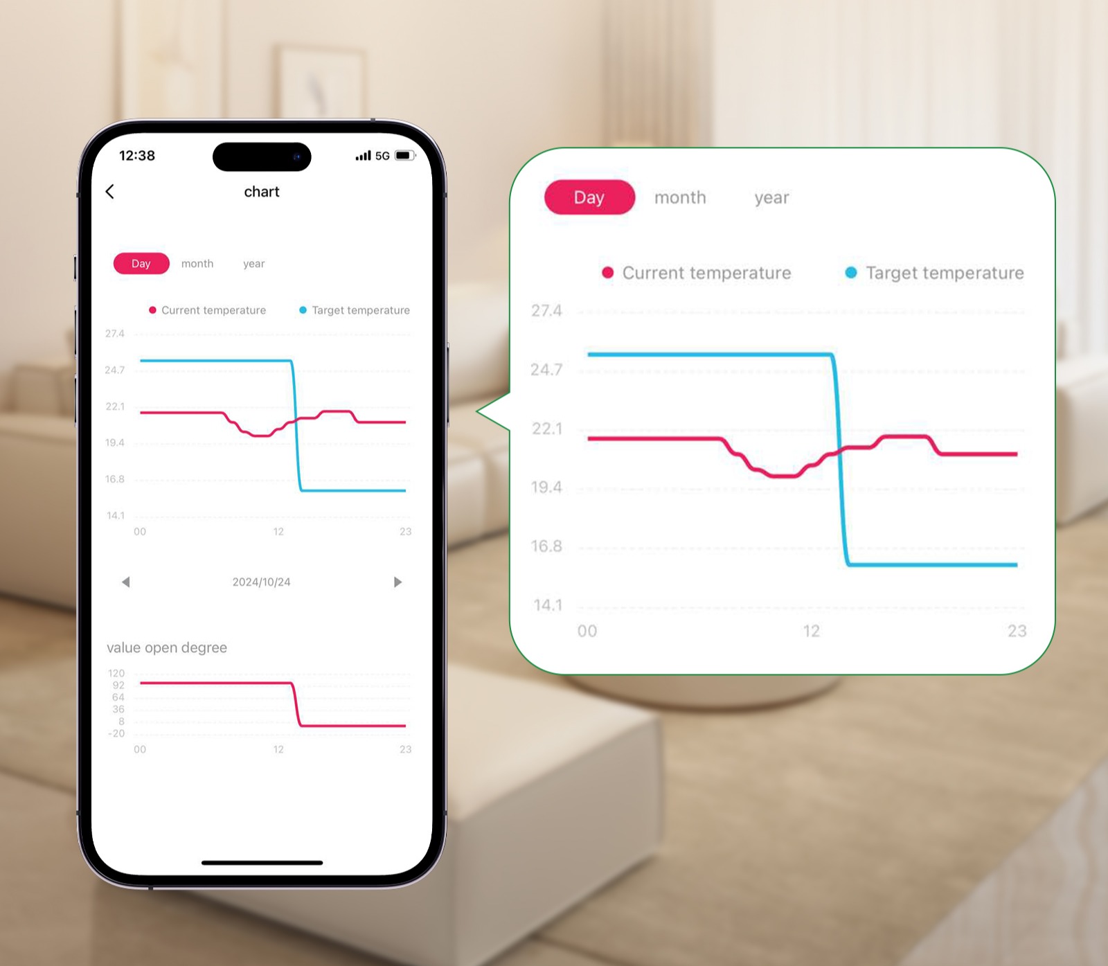 Można ustawić indywidualny harmonogram ogrzewania dopasowany do trybu życia domowników. Inne temperatury mogą obowiązywać np. rano, inne wieczorem lub w nocy.