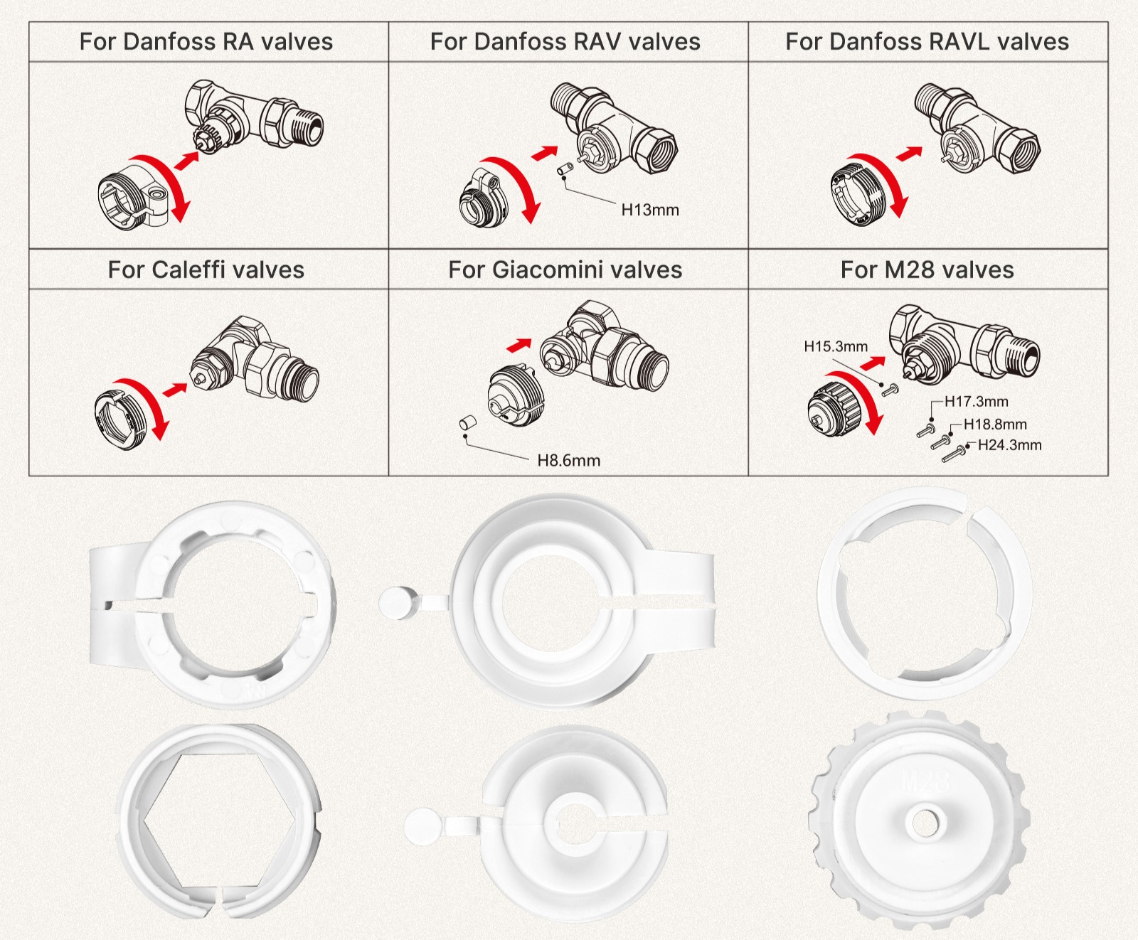Głowica MOES ZTRV-S01 została zaprojektowana z myślą o automatyzacji ogrzewania, oszczędności energii i wygodzie użytkownika. Dzięki dołączonym adapterom można zamontować ją na większości standardowych grzejników – także starszych modeli. Prosty montaż nie wymaga specjalistycznych narzędzi, a instalacja zajmuje tylko kilka minut.