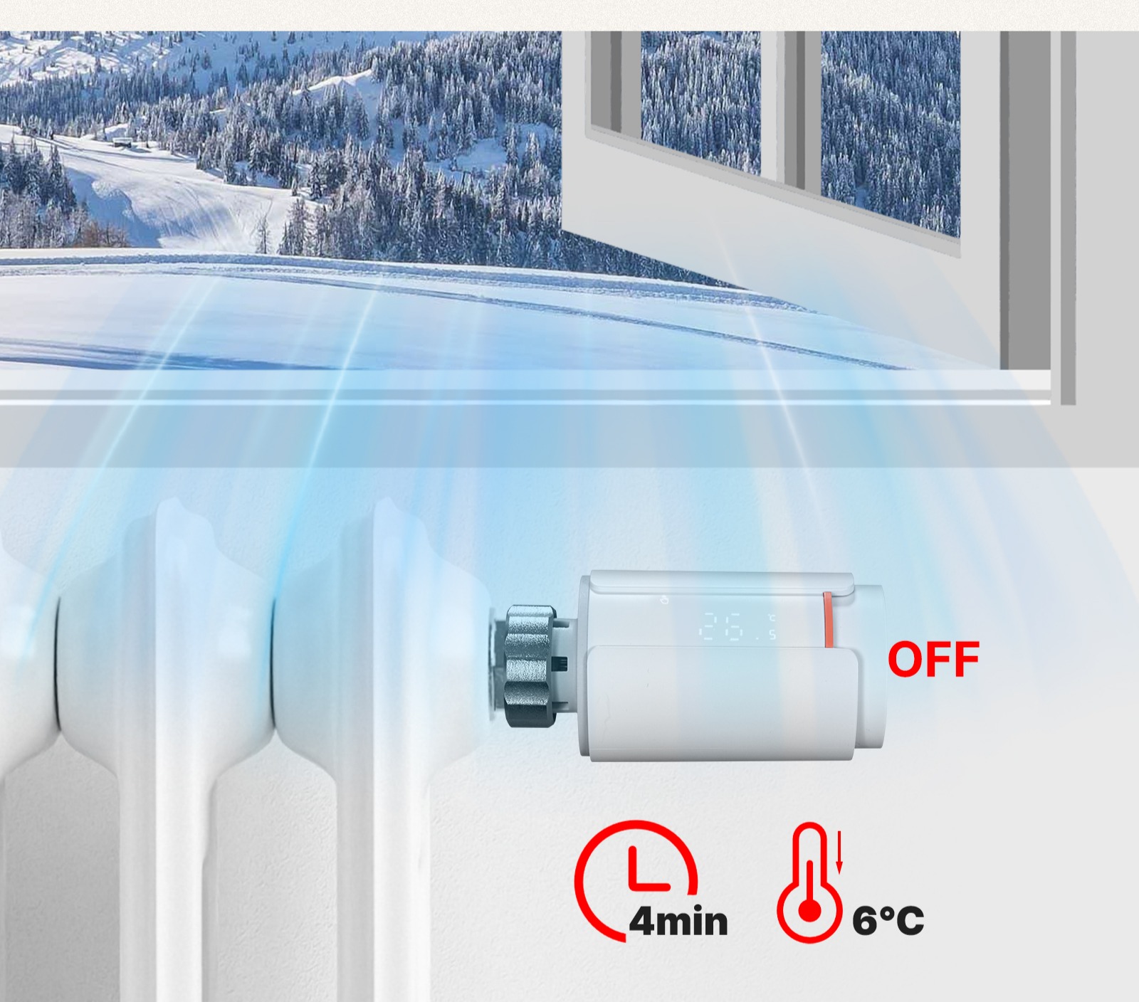 Urządzenie rozpoznaje nagły spadek temperatury i automatycznie obniża moc grzania, aby zapobiegać niepotrzebnym stratom energii. To realna oszczędność w sezonie grzewczym.