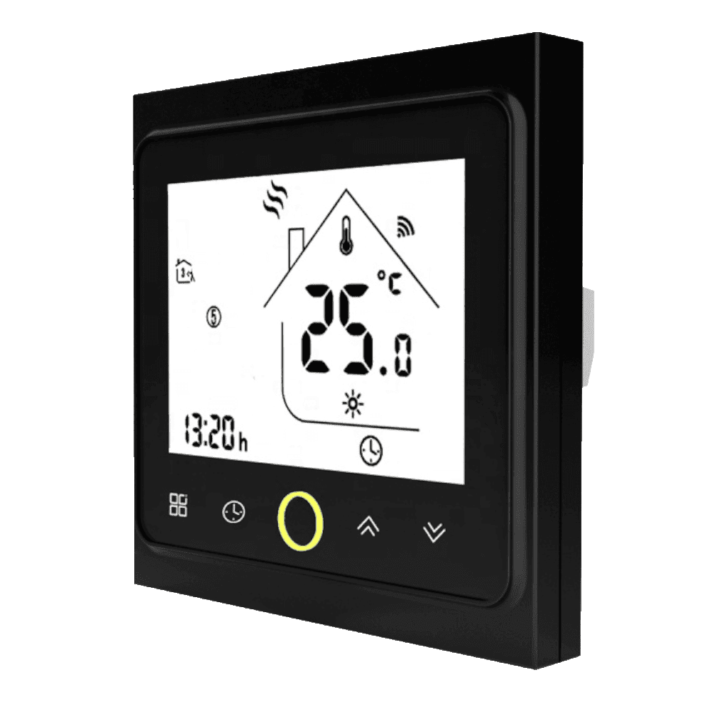Nowoczesny i elegancki design, dotykowy ekran LCD oraz precyzyjne sterowanie temperaturą sprawiają, że termostat BHT-002 doskonale komponuje się w każdym wnętrzu, zapewniając komfortową temperaturę w różnych pomieszczeniach Twojego domu.