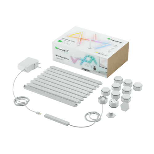 Starter Kit to podstawowy zestaw umożliwiający rozpoczęcie swojej świetlnej twórczości z listwami Nanoleaf Lines. Możesz go powiększać o kolejne zestawy dodatkowych listw (Nanoleaf Lines Expansion Pack) tworząc wielkie projekty świetlne!