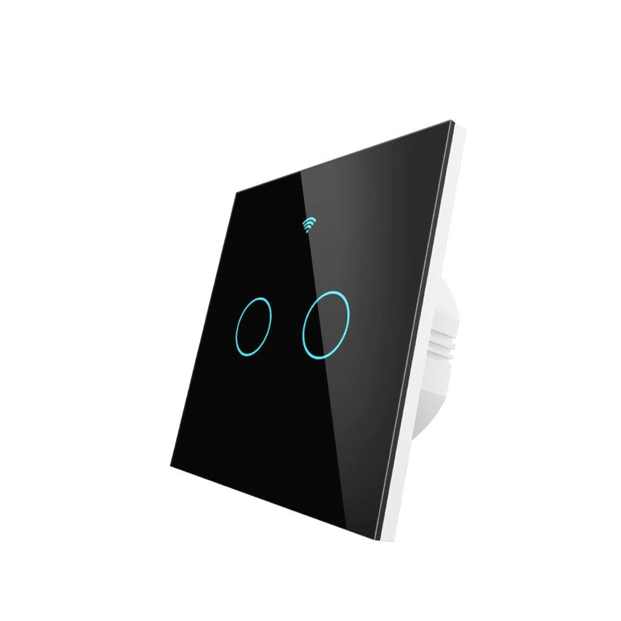 Dotykowy włącznik podwójny szklany WiFi+RF Moes Tuya to nowoczesny, inteligentny przełącznik ścienny L+N, który pozwala wygodnie sterować dwoma obwodami oświetleniowymi z jednego eleganckiego panelu.