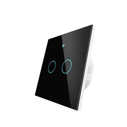 Czarny, szklany front sprawia, że dotykowy włącznik podwójny szklany WiFi+RF Moes Tuya doskonale pasuje do nowoczesnych wnętrz, łącząc się stylistycznie z innymi czarnymi elementami wyposażenia.