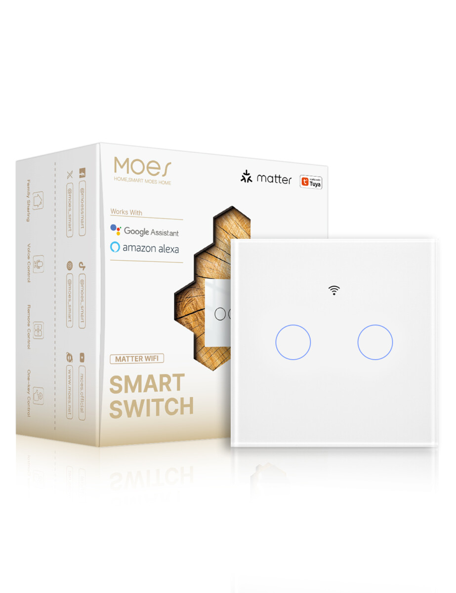 Parametry | Przełącznik szklany dotykowy Matter podwójny Biały Moes MWS-EU2-WH |