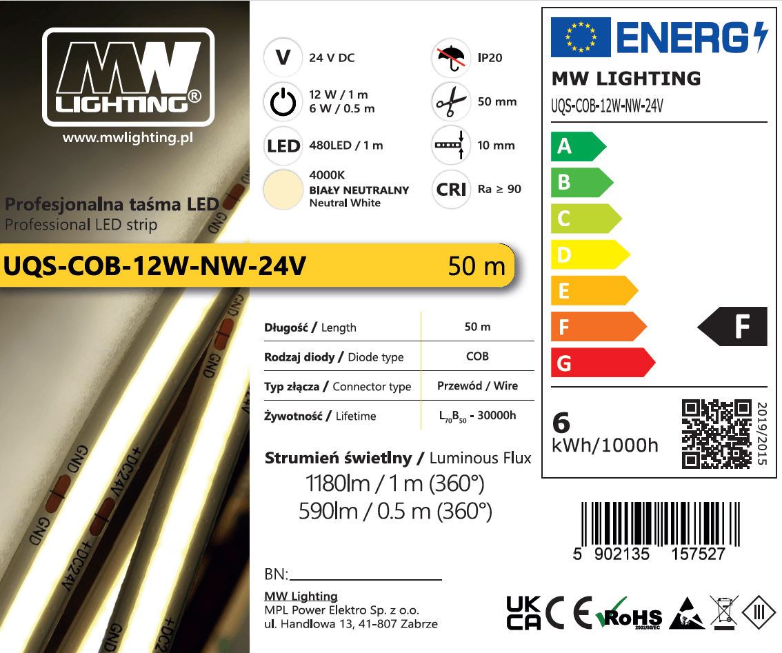 | Kod produktu | UQS-COB-12W-NW-24V-50m |