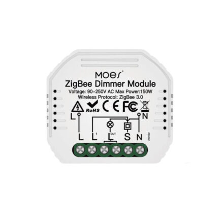 Ściemniacz Pojedynczy Zigbee Moes MS-105Z Tuya to kompaktowy moduł przeznaczony do inteligentnego sterowania oświetleniem. Działa w protokole ZigBee 3.0 i współpracuje z hubami kompatybilnymi z Tuya/Moes, umożliwiając zdalne włączanie/wyłączanie i płynną regulację jasności lamp. Idealny do montażu w puszkach EU/UK – pozwala zachować istniejący tradycyjny włącznik i dodać funkcje smart bez konieczności dodatkowego okablowania.
